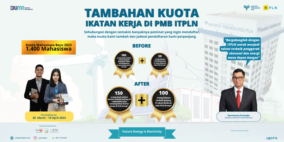 KABAR GEMBIRA PENAMBAHAN KUOTA IKATAN KERJA DI PT PLN (PERSERO) DIPERPANJANG BERGABUNGLAH DI INSTITUT TEKNOLOGI PLN