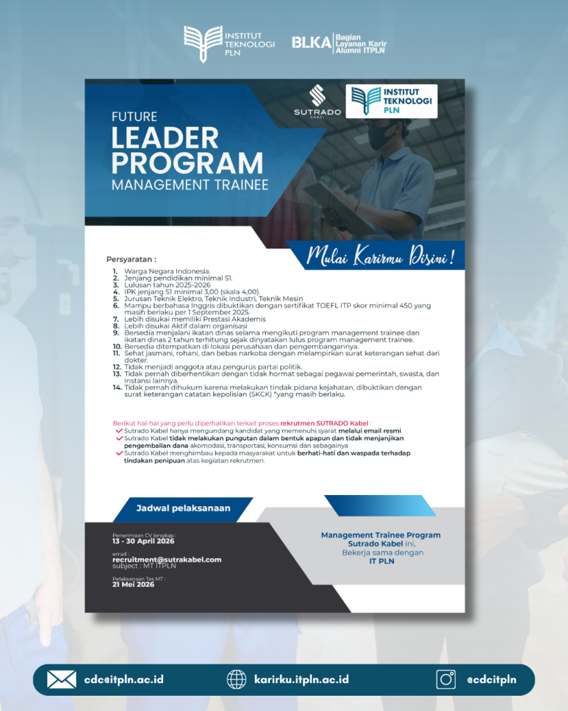 PT Sutrado Kabel sedang membuka open recruitment untuk program Management Trainee.