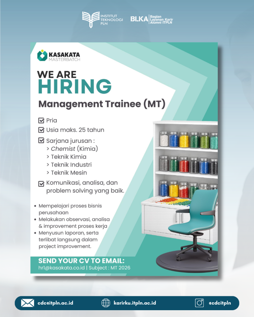 PT Kasakata Masterbatch sedang membuka open recruitment untuk program Management Trainee.