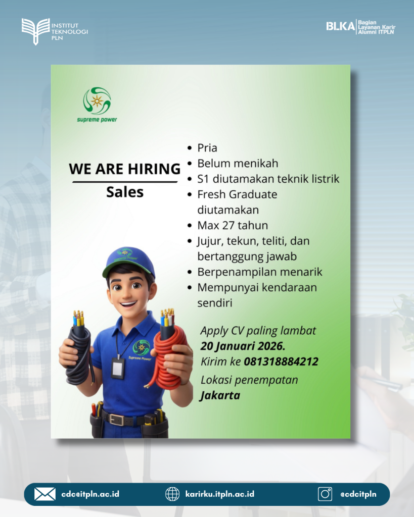 PT Supreme Power sedang membuka open recruitment untuk posisi Sales.