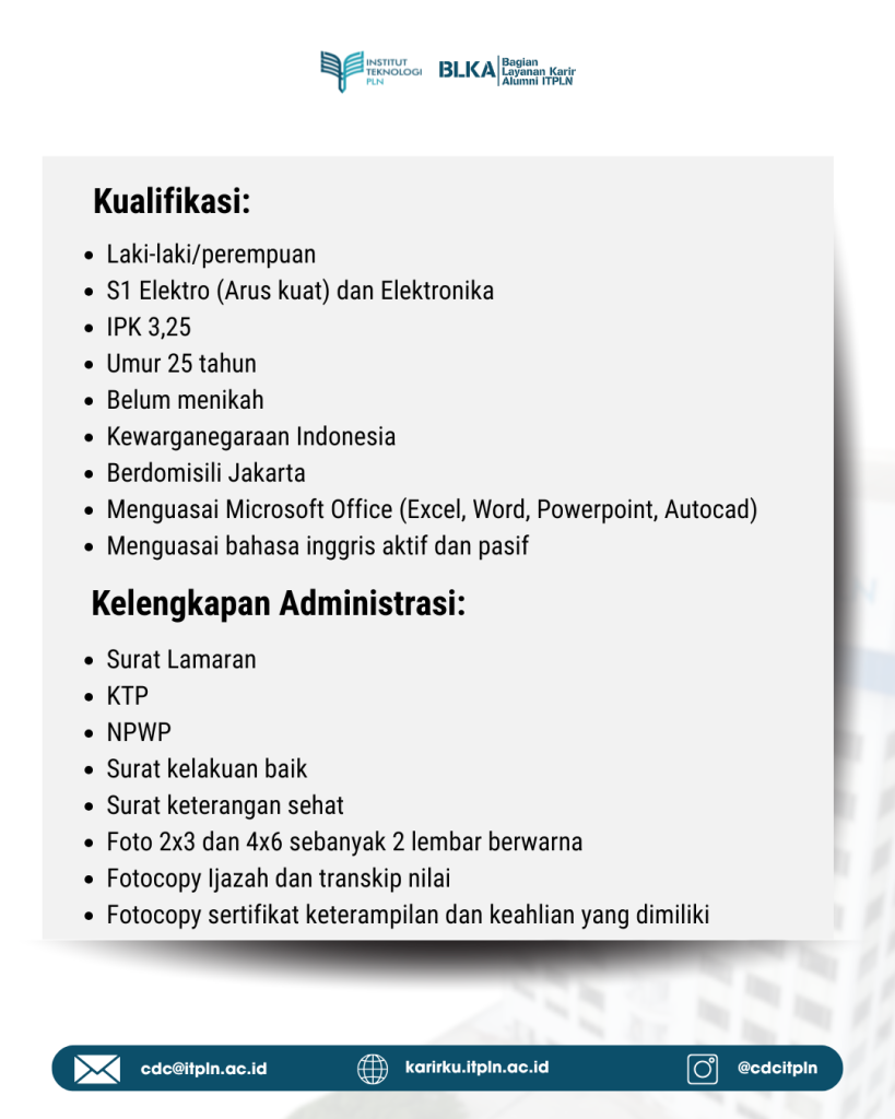 📢LOWONGAN KERJA ALUMNI ITPLN⭐️