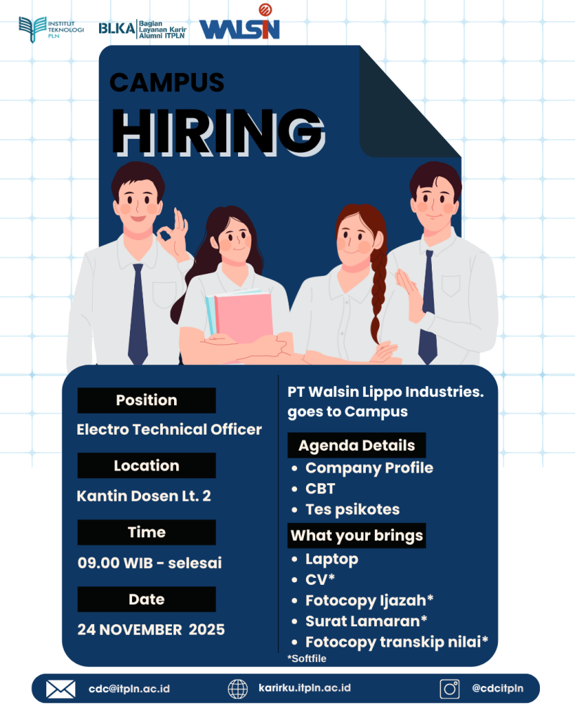 PT Walsin Lippo Industries hadir langsung ke ITPLN dalam acara Campus Hiring yang akan diadakan pada: